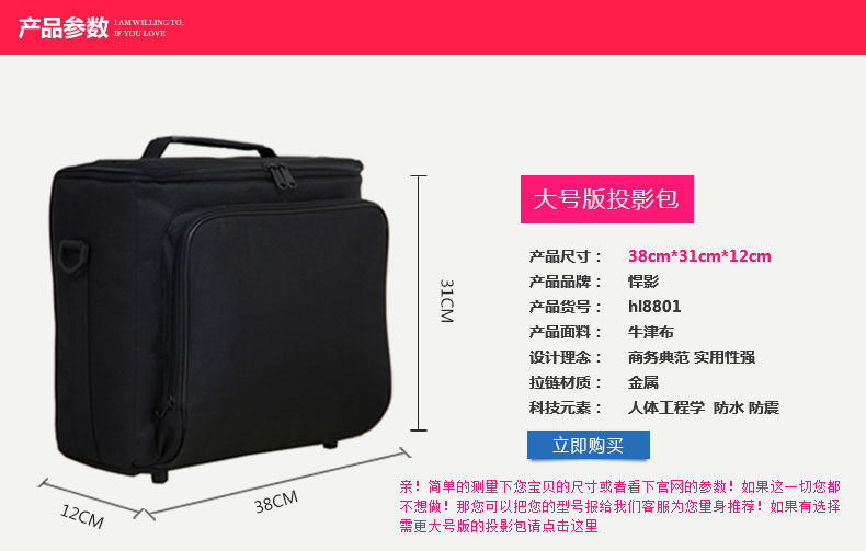 大号版投影仪包 投影机包 明基宏基索尼松下爱普生投影携带包加厚版尺寸38cm宽*31高*12厚 尺寸不符慎拍