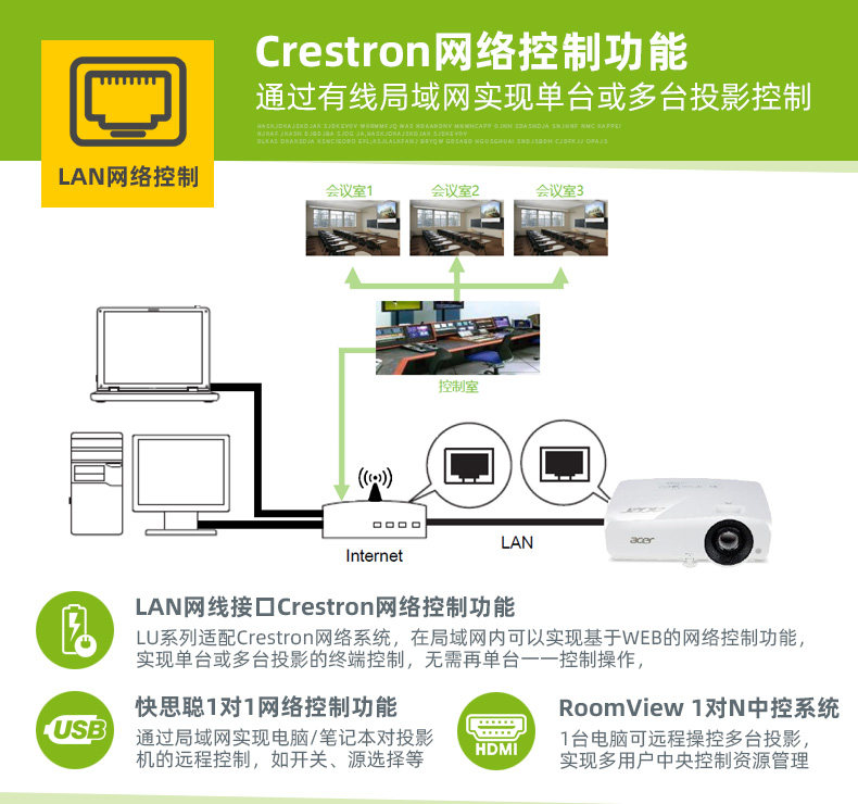 双冠宏碁ACER LU-X300投影仪商用培训工程激光短焦3D投影机