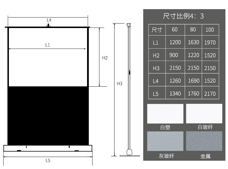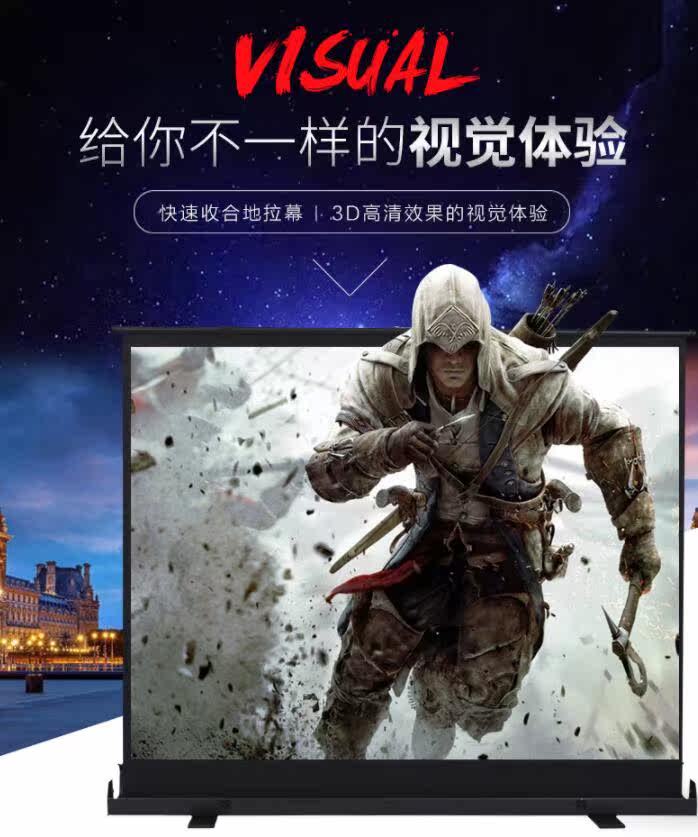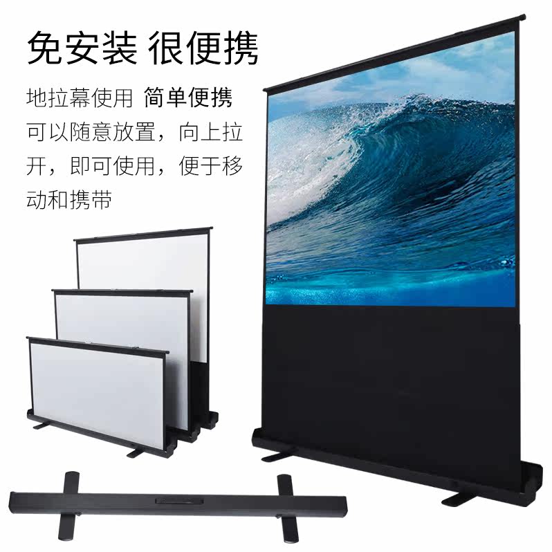 便携式地拉投影幕布100寸移动投影幕4:3客厅家用商务会议室高端大气超高清投影幕布包邮