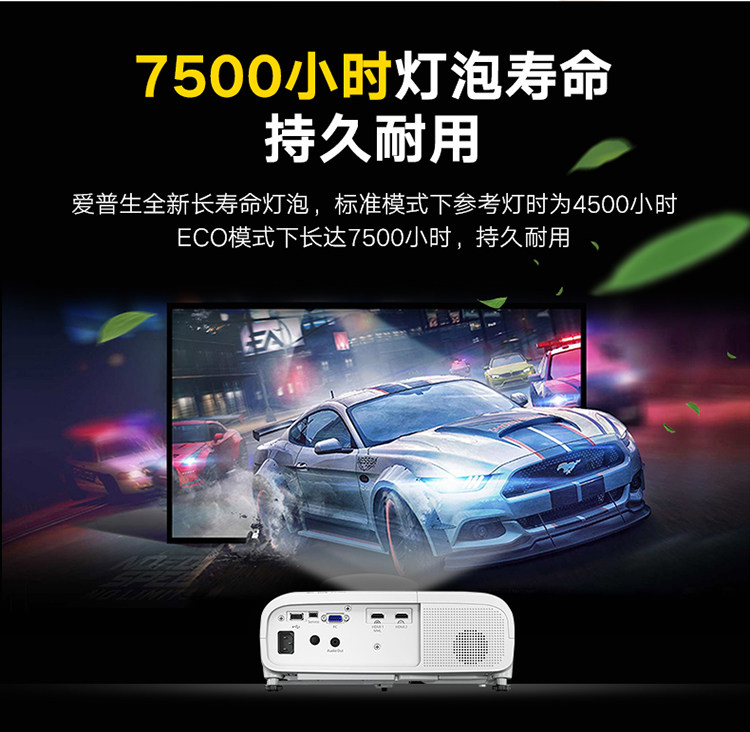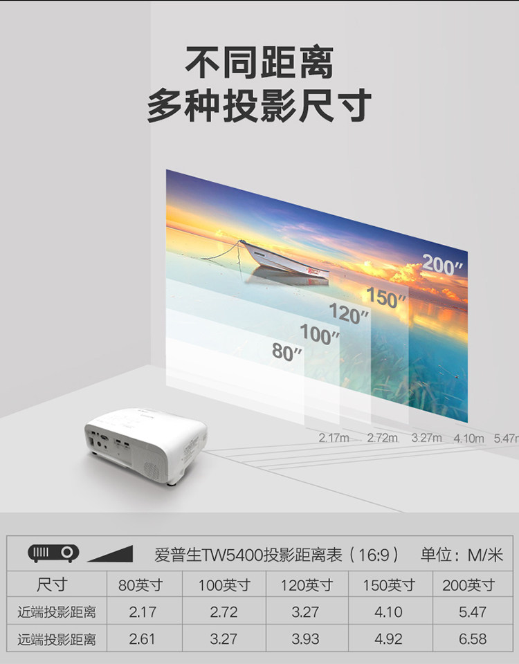 epson爱普生3D家庭影院投影仪tw5400大屏2500流明全高清1080P手机wifi卧室投墙看电影小型便携智能家用投影仪