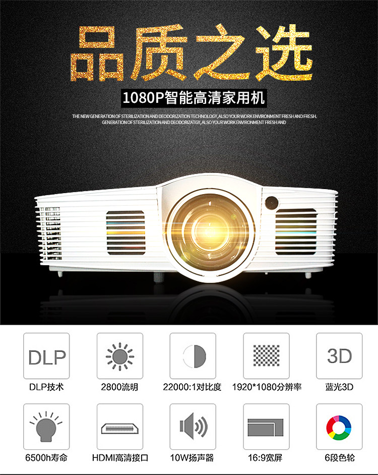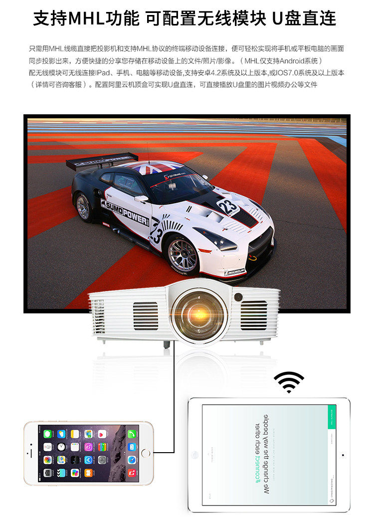 Optoma奥图码超短焦投影仪GT1080家用宽屏全高清1080P家庭影院客厅卧室用无屏电视K歌KTV白天直投3D投影机