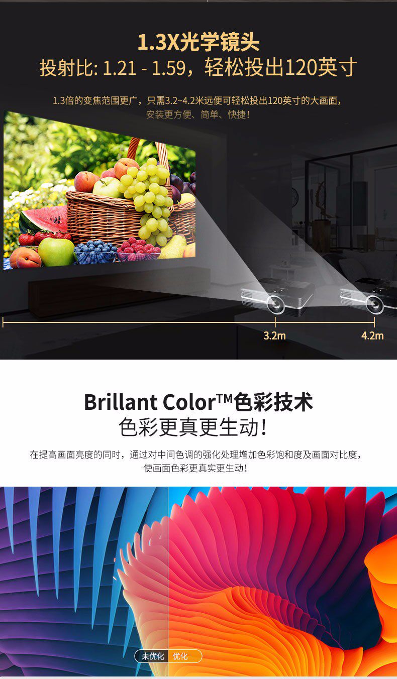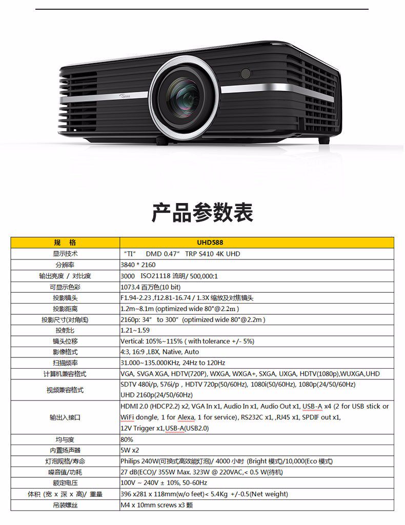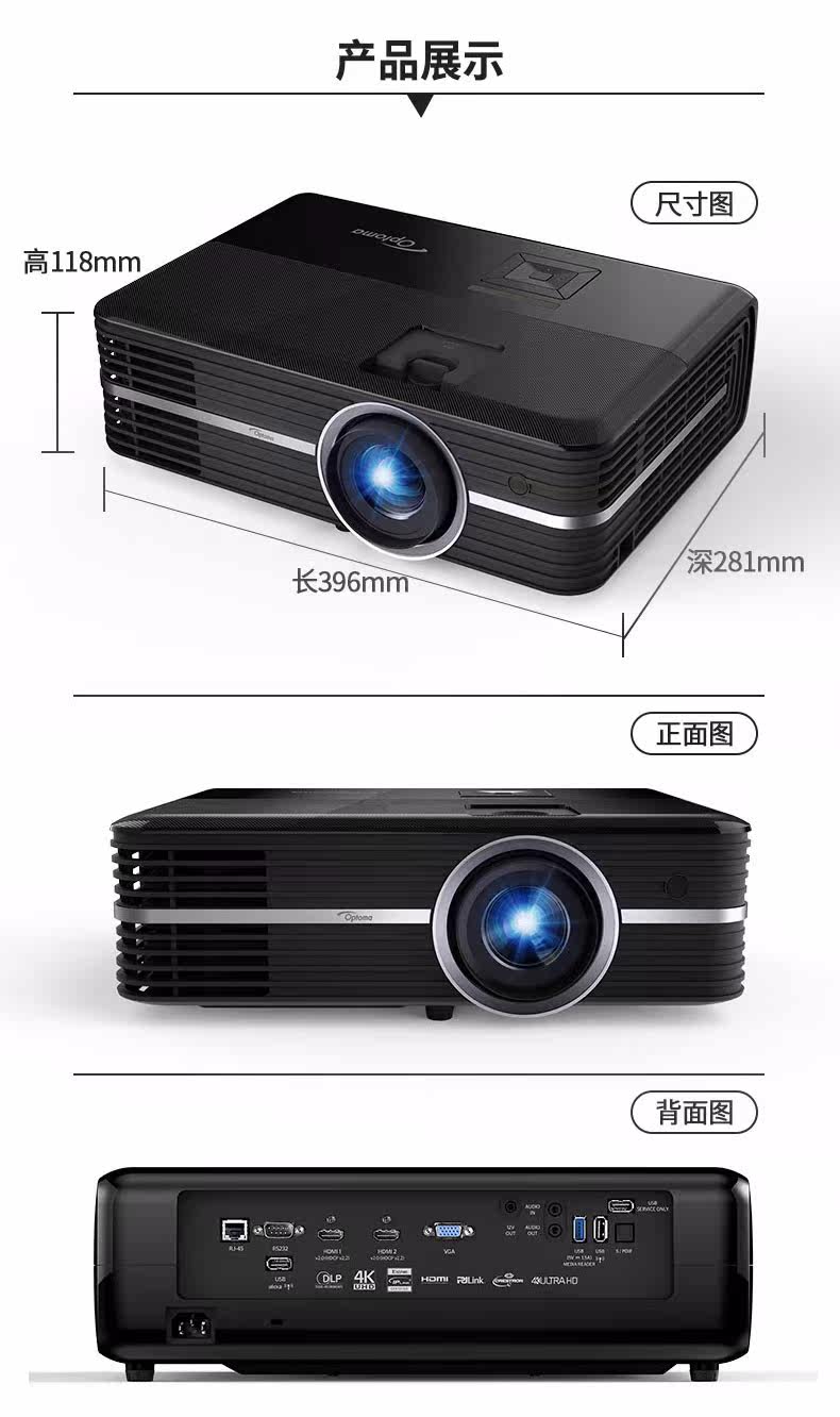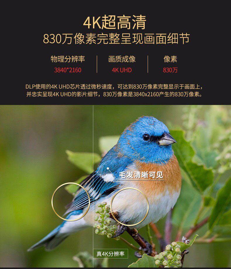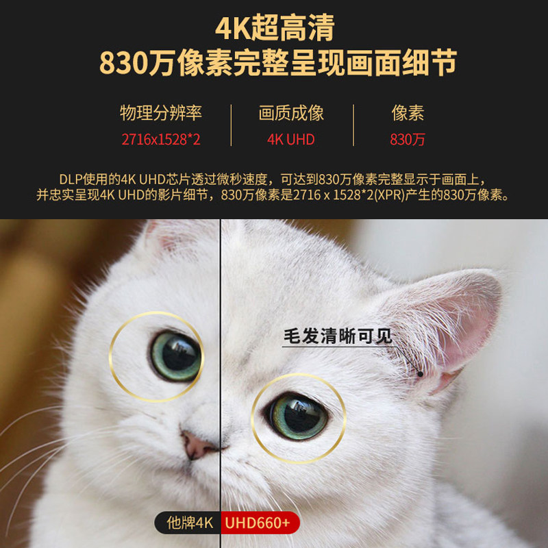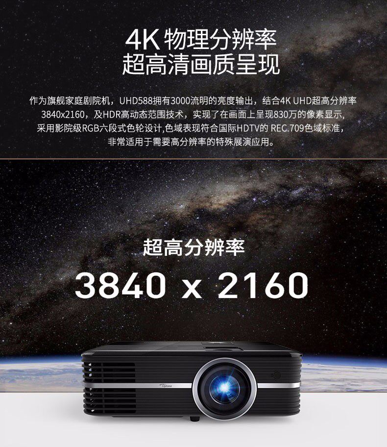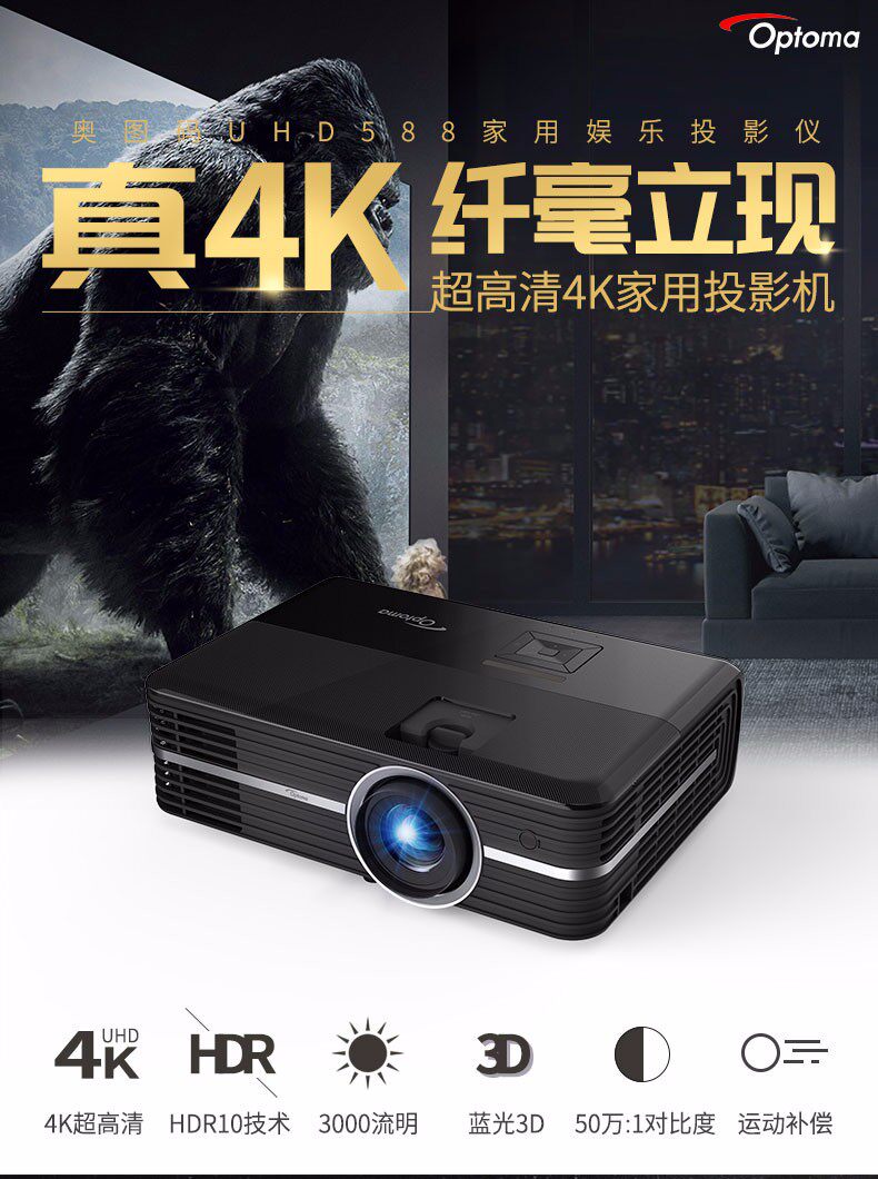 Optoma奥图码真4K家用投影机UHD660+高清室内卧室家庭影院墙上看电影小型便携无屏电视wifi无线蓝光3D投影机