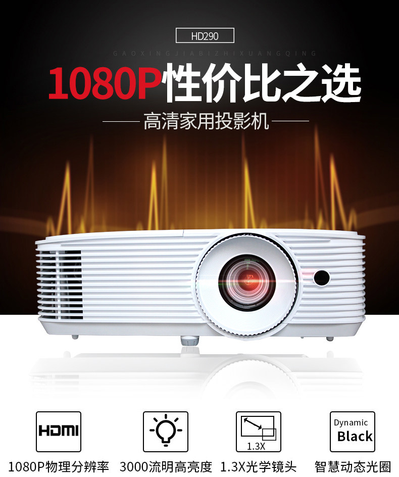 Optoma奥图码家用高清1080P投影仪HD290大屏高亮3000流明家庭影院卧室投墙无屏电视手机无线wifi蓝光3D投影机