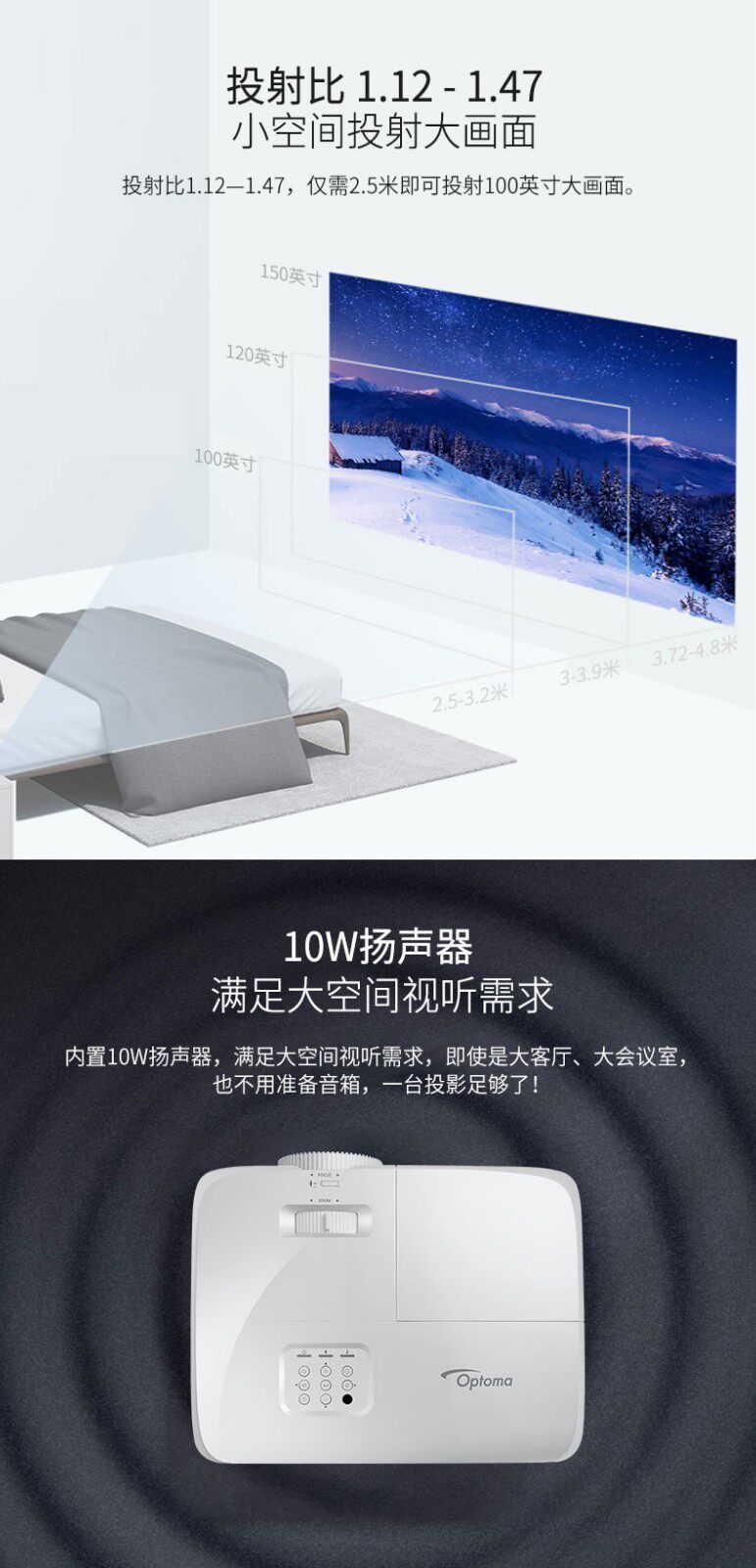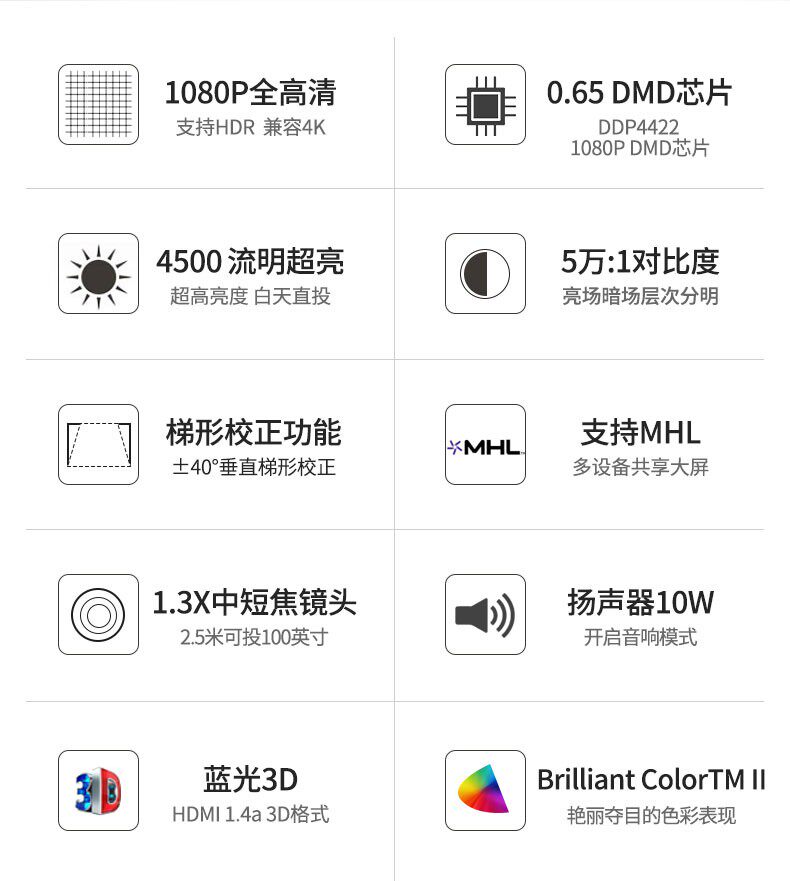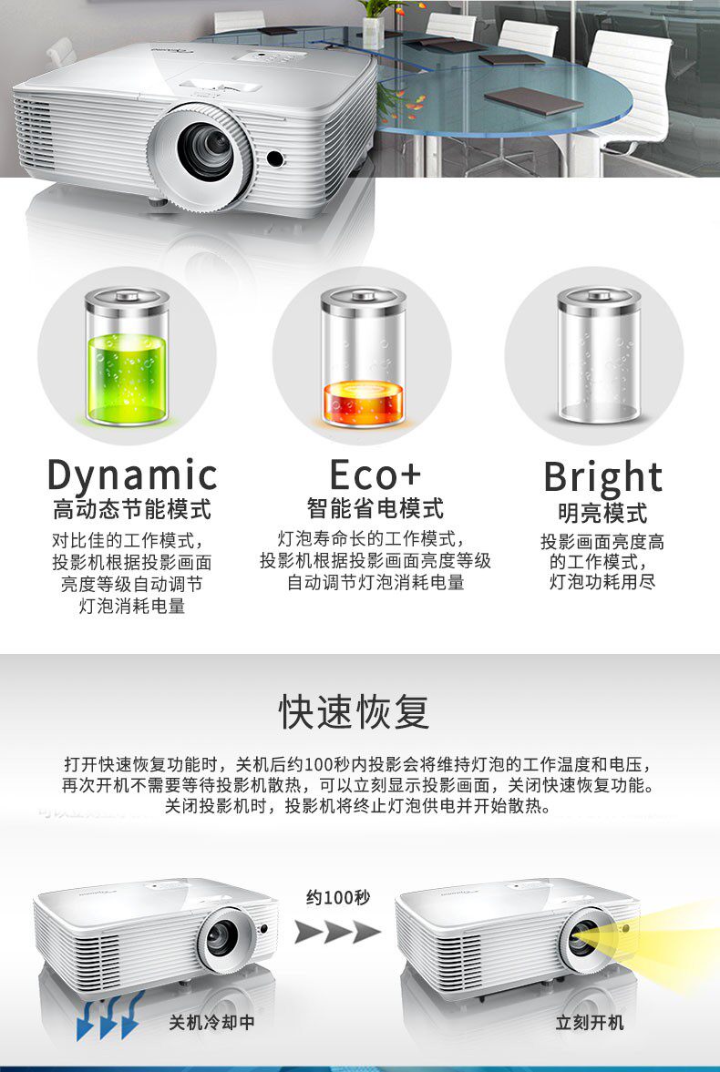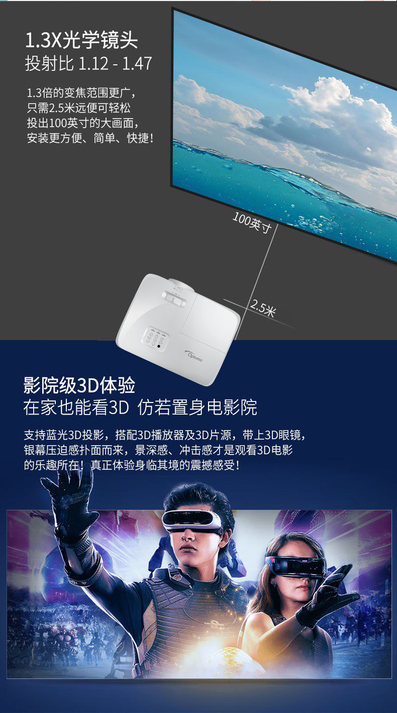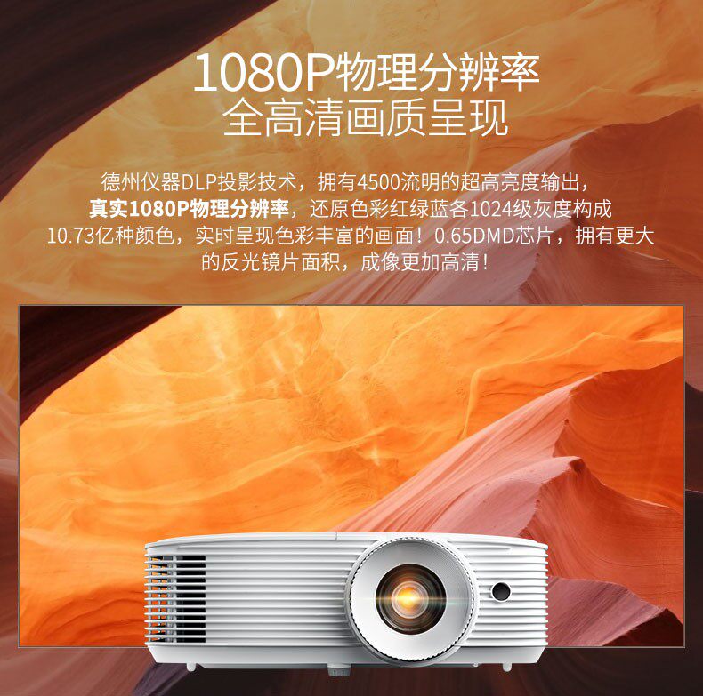 Optoma奥图码多功能高亮投影机EH412 兼容4K高清4500流明白天直投家庭影院3D智能1080P无屏电视家用投影仪
