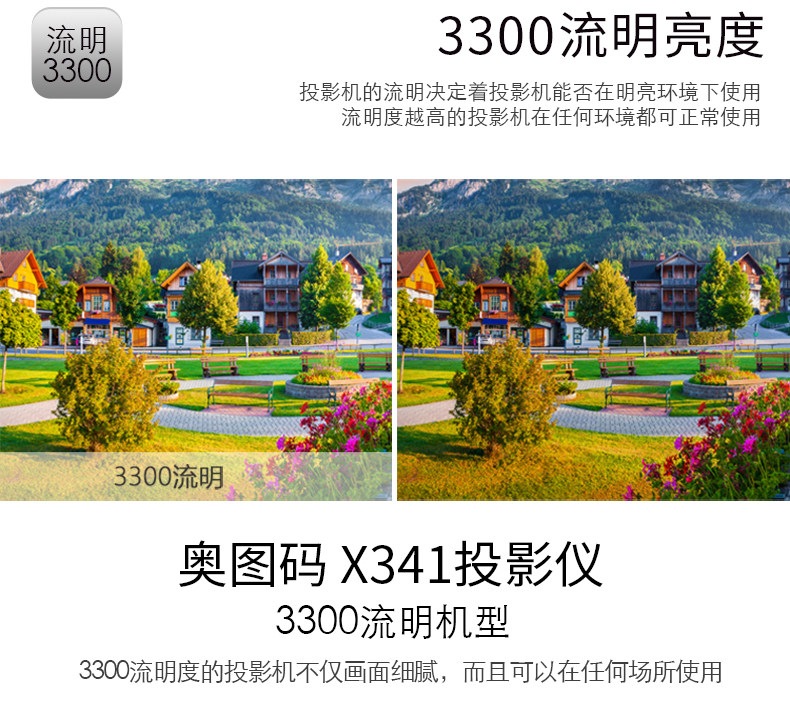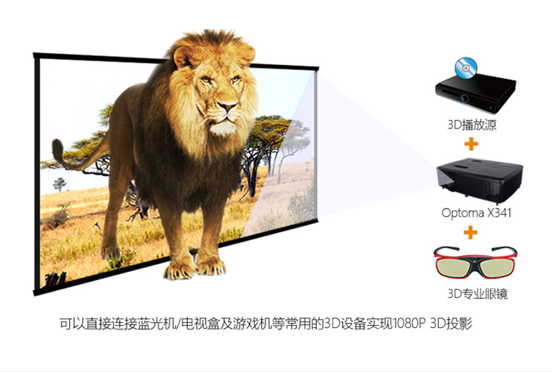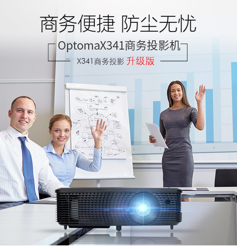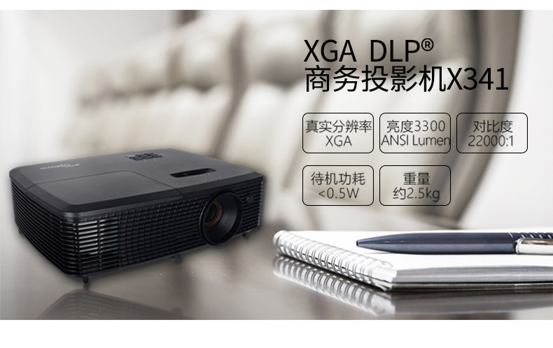Optoma奥图码商务便携投影仪X341高清1080P高亮3300流明3D蓝光商务教学培训教育办公用会议投影机