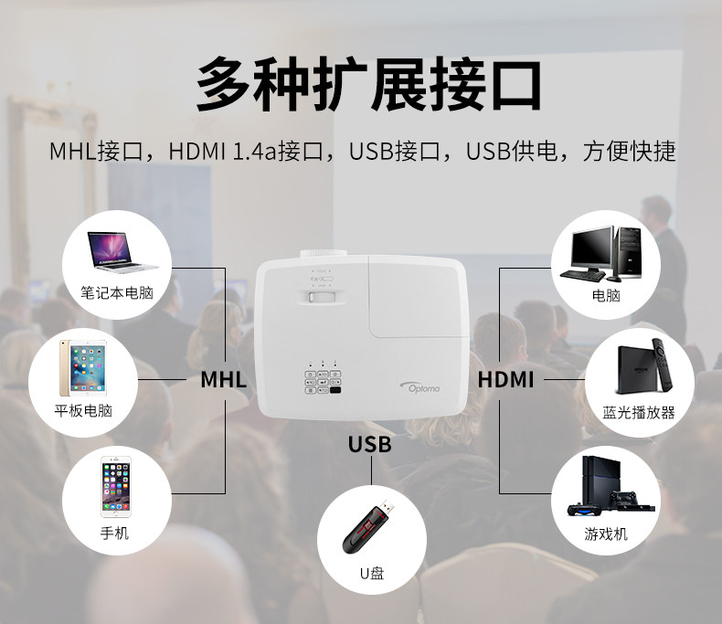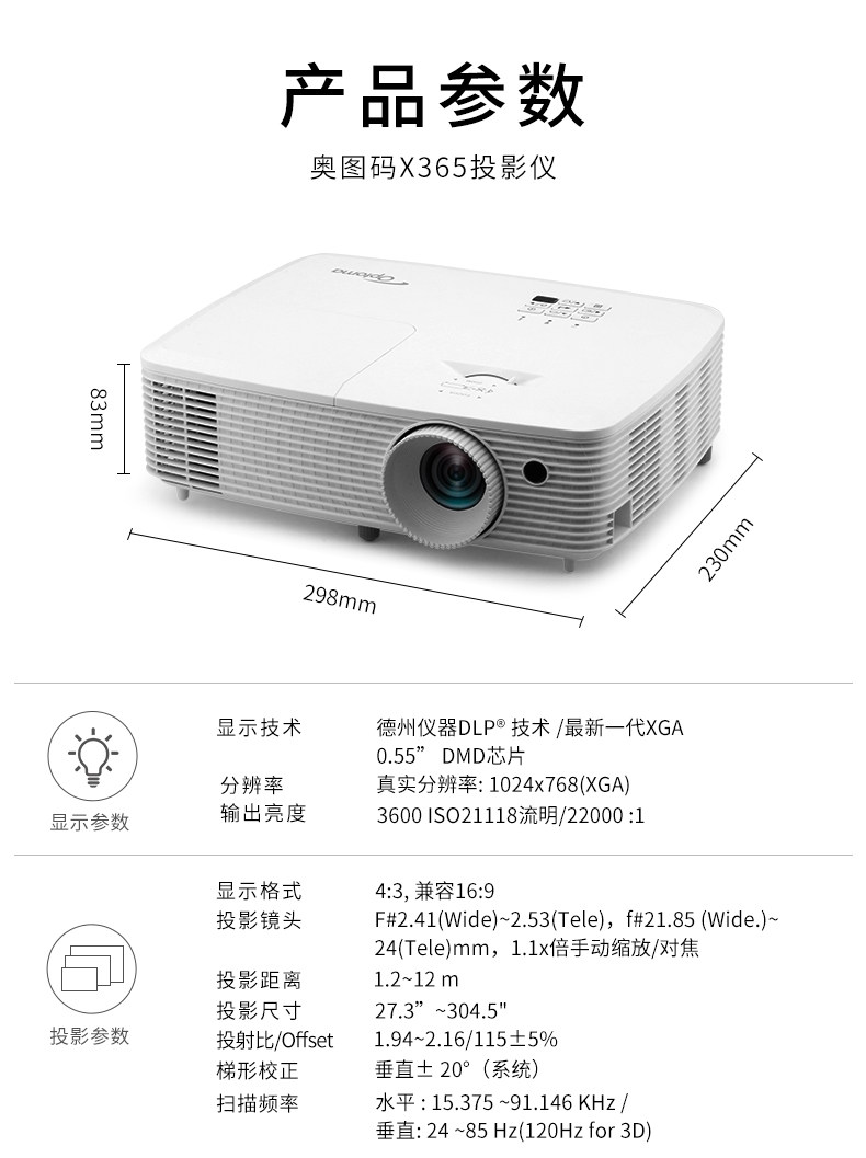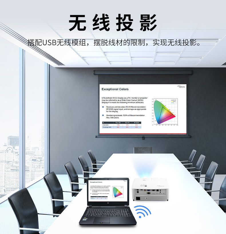 Optoma奥图码X365高端商务无线投影机高清高亮3600商务办公会议教室用培训家庭影院白天直投投影仪