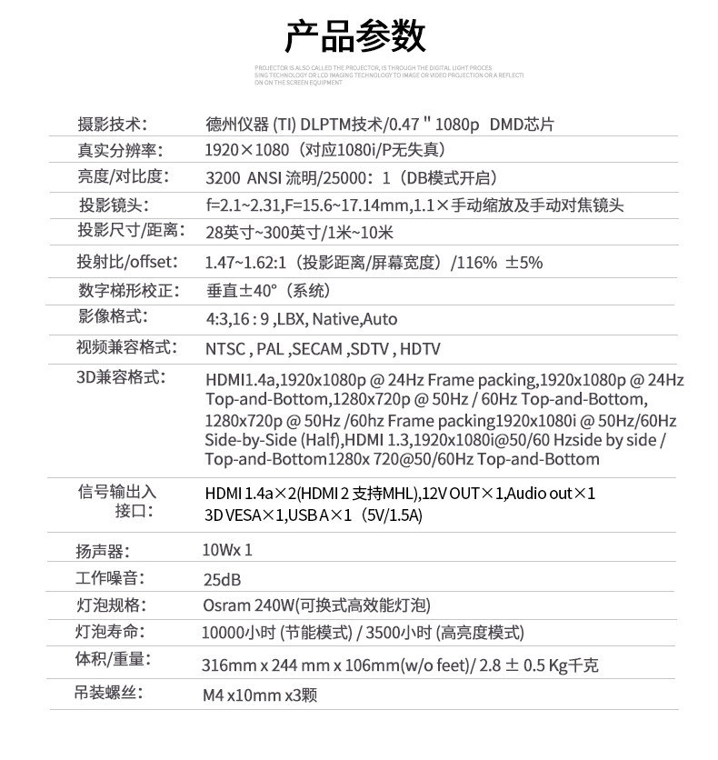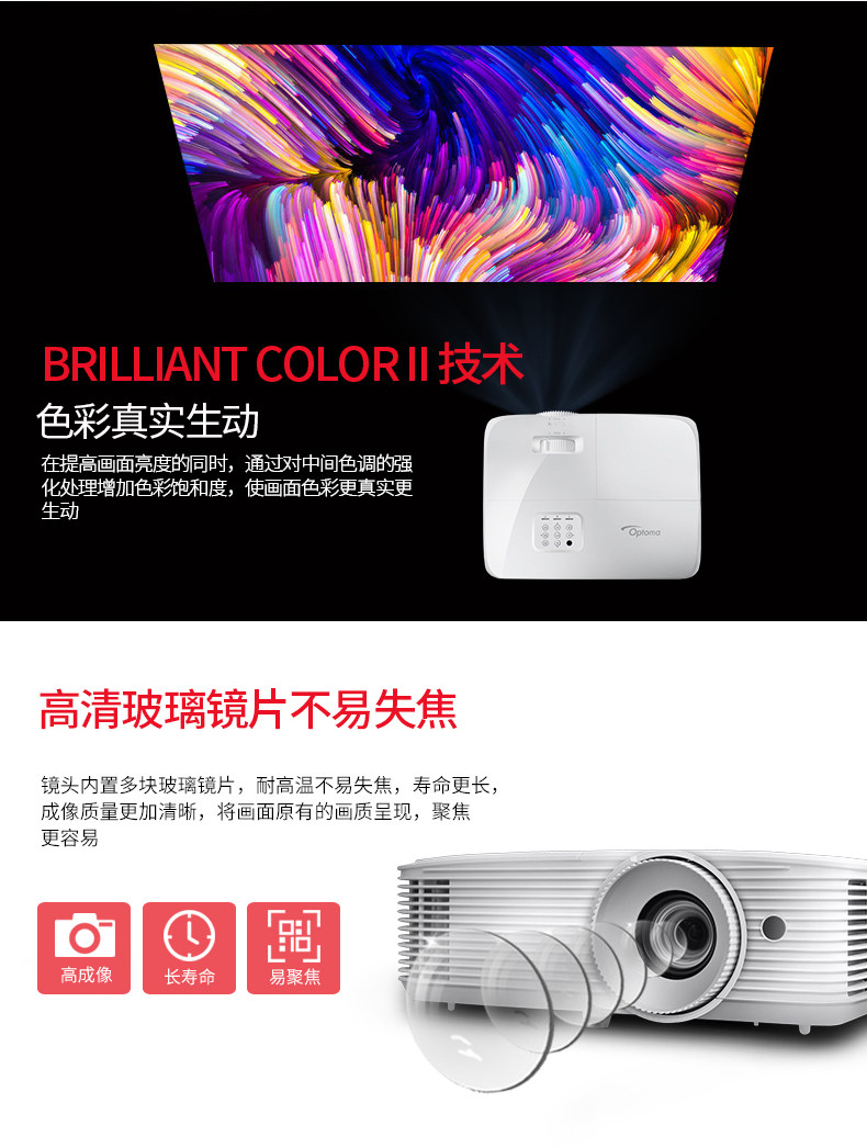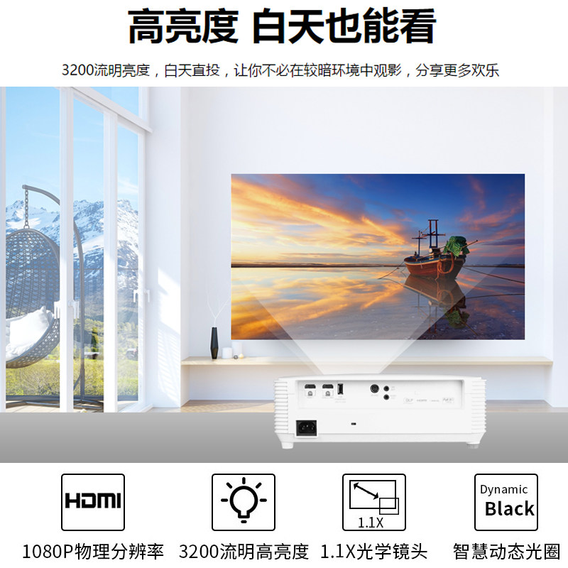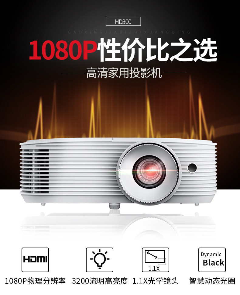 Optoma/HD300奥图码1080P大屏高清影院投影仪高亮3200流明卧室小型无线wifi蓝光3D宽屏家庭影院家用投影机