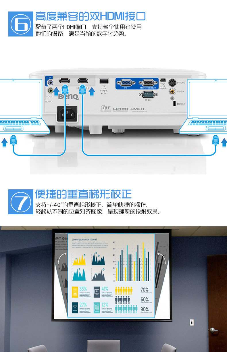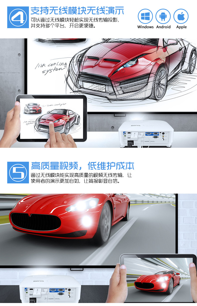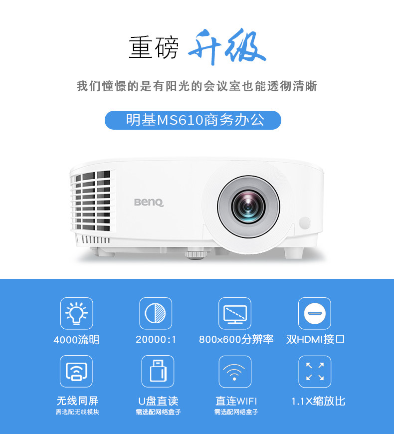 Benq明基投影机MS610办公用会议培训3D/4000流明白天直投高清高对比度U盘直读无线同屏送翻页笔高清线投影仪