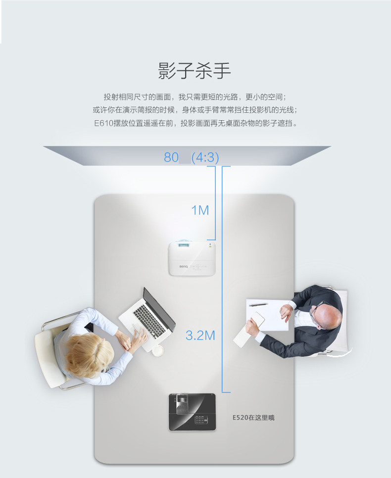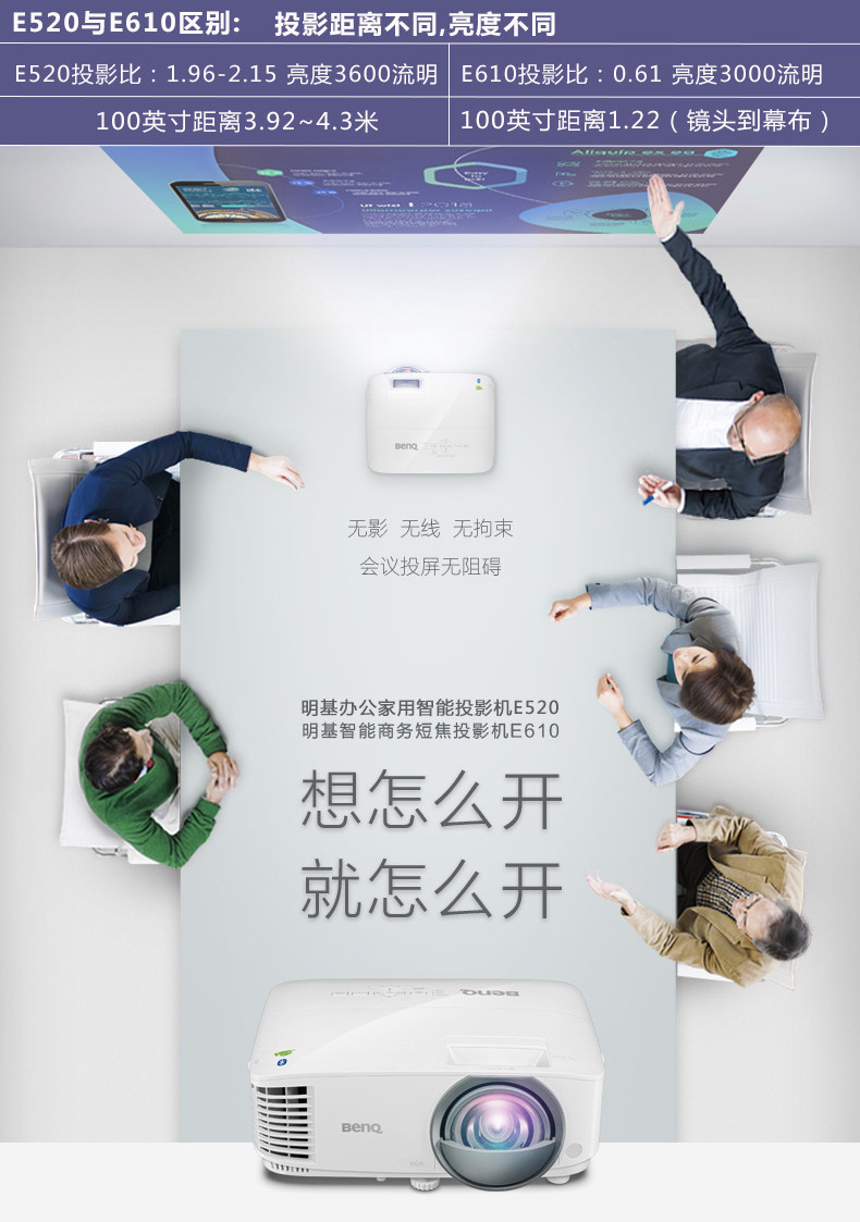 明基E560投影仪智能安装WIFI无线商务会议3D投影机