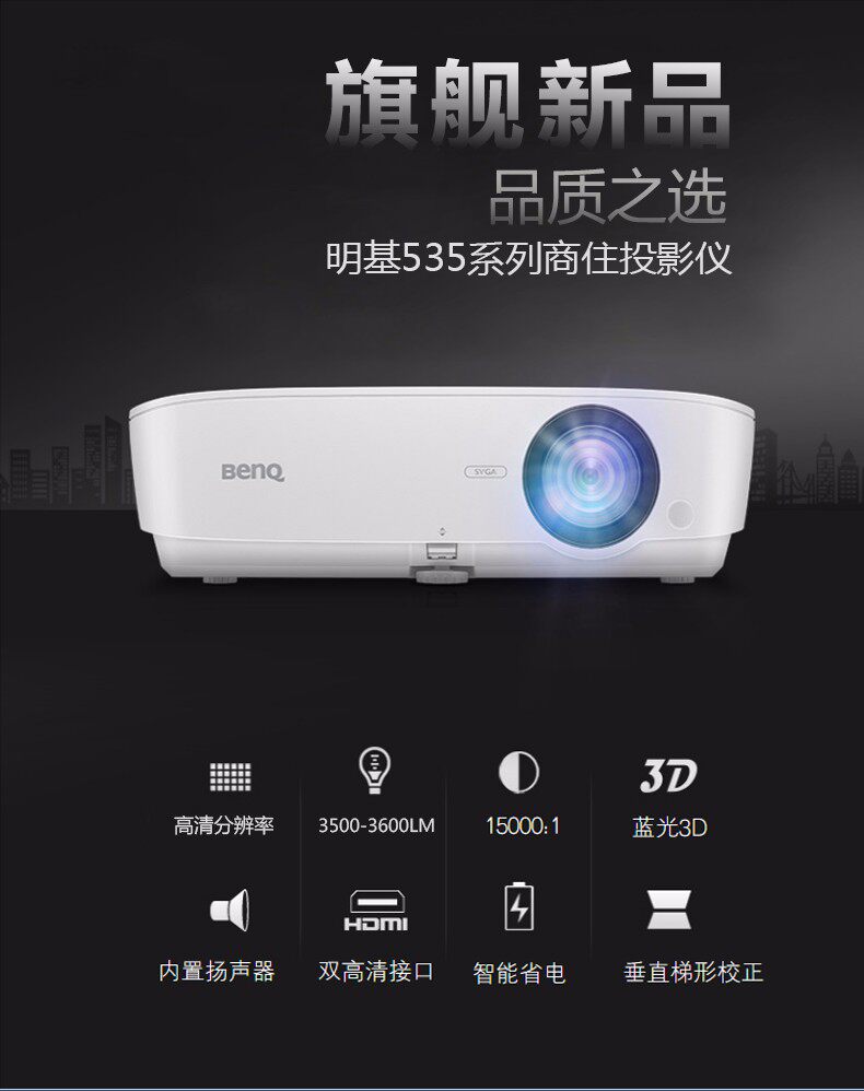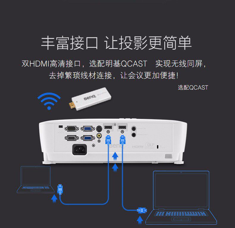 BENQ/明基MW535投影仪MW529升级版家用卧室客厅办公会议室教育培训教学商用高清wifi无线蓝光3D白天投影机