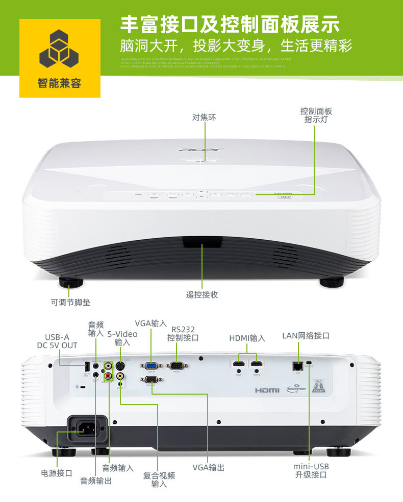 Acer宏碁超短焦投影机LU-X500商务教育展厅家用3D影院无屏电视高清激光工程机