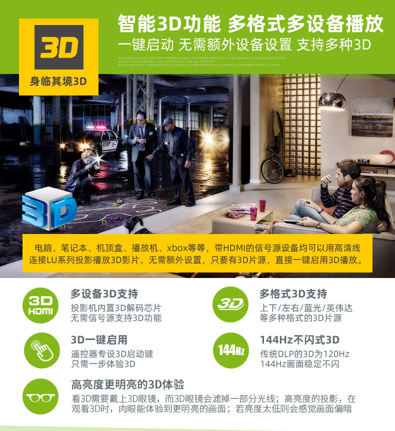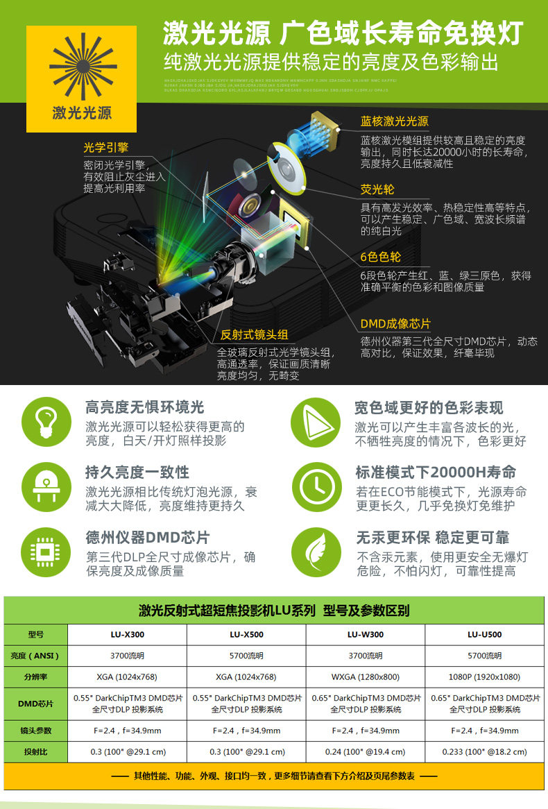 Acer宏碁1080P高清超短焦投影机LU-U500激光商务教育展厅1080P高清家用3D家庭影院无屏电视激光工程机