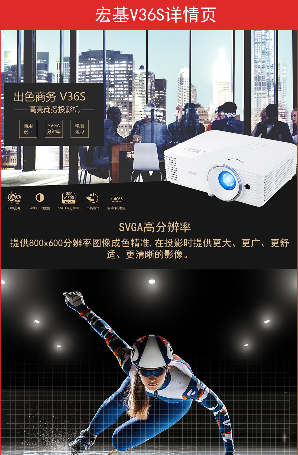 Acer宏基投影仪V36S高亮3600流明商务商用3D办公会议用教育培训蓝光小型便携无线wifi白天直投投影机