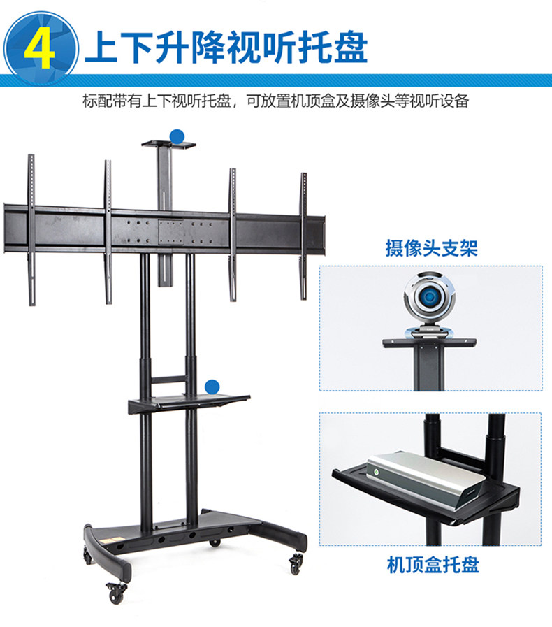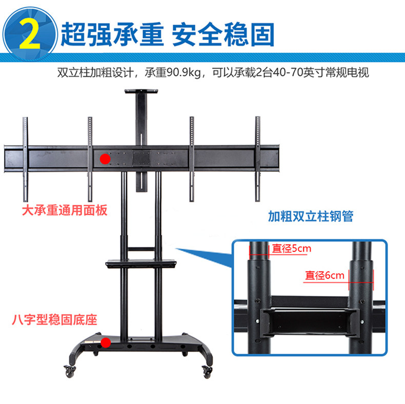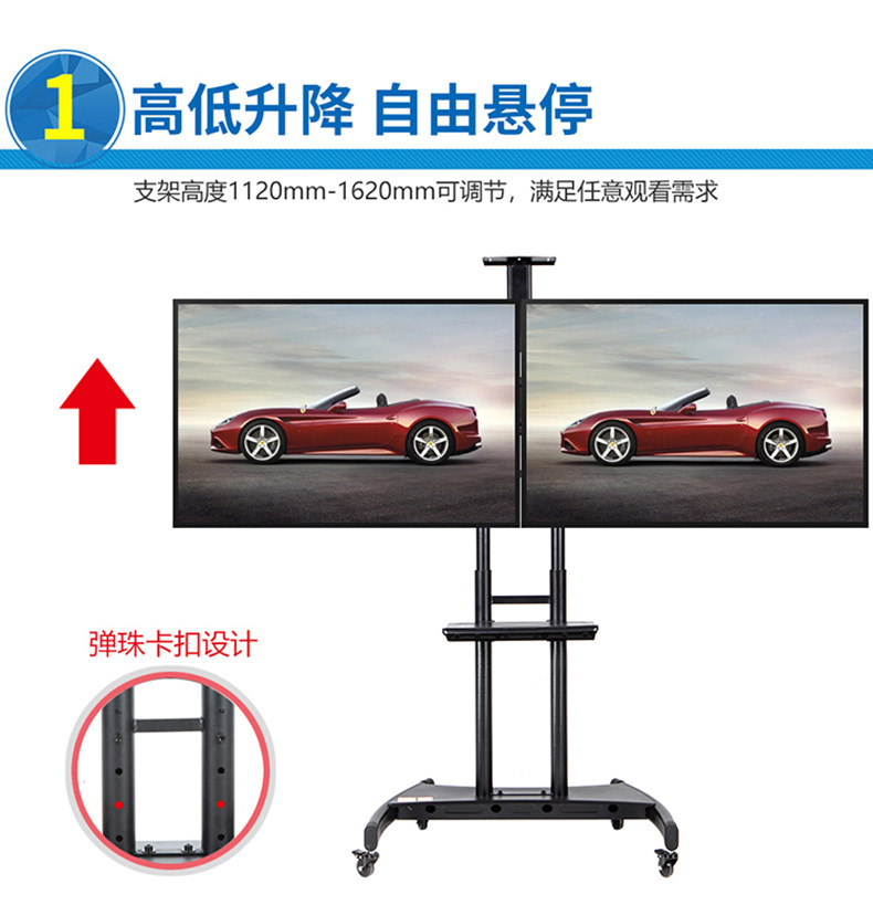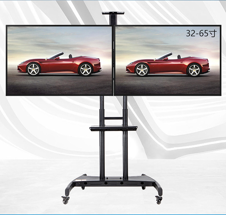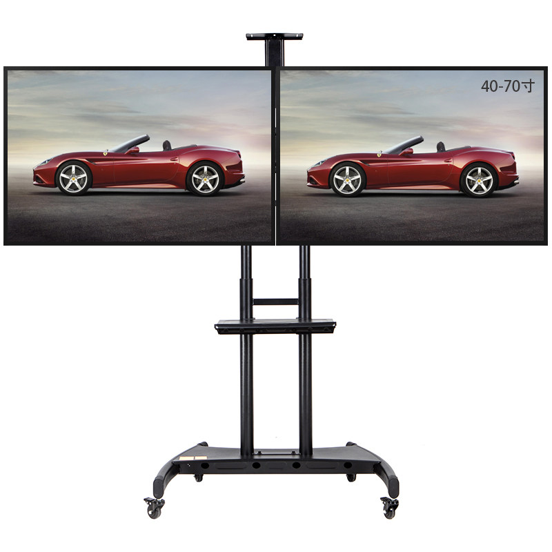 40-70寸双屏电视支架一体机移动挂架视频会议移动推车灿盛F1380-2A
