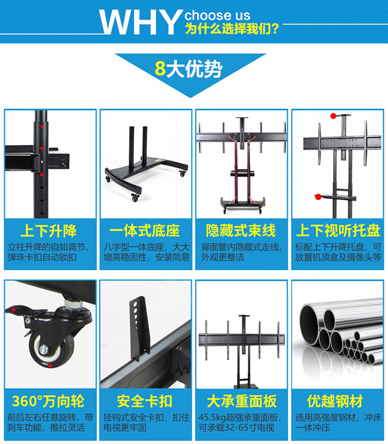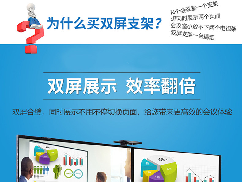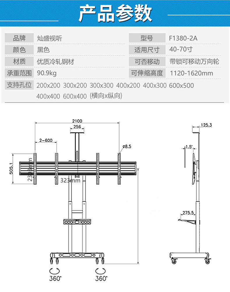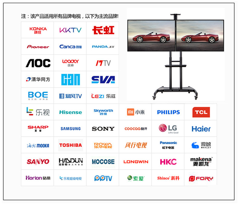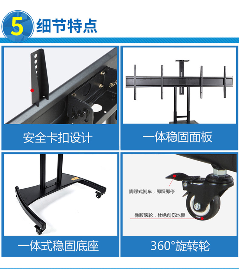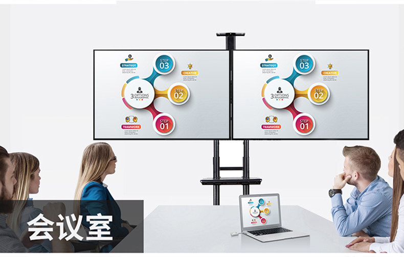 40-70寸双屏电视支架一体机移动挂架视频会议移动推车灿盛F1380-2A
