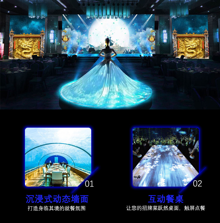3D投影全息餐厅沉浸式互动餐厅梦幻餐桌投影秀酒店舞台婚礼秀裙摆上门安装
